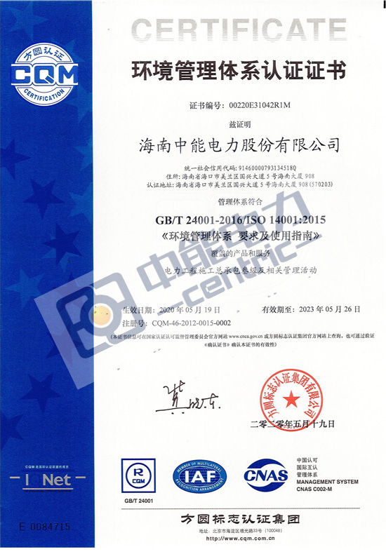 環(huán)境管理體系認(rèn)證證書